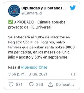 Los siguientes IFE, segundo y tercer, se han ampliado al 80% y los siguientes que se llama IFE universal es para el 100% de los que están en el Registro Social de Hogares y tienen una entrada per capita menor a $800.000.